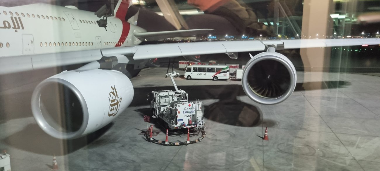 Ja spaßig nebenbei - bei den Emirates bekommt man ein Flugzeugurlaubsfoto