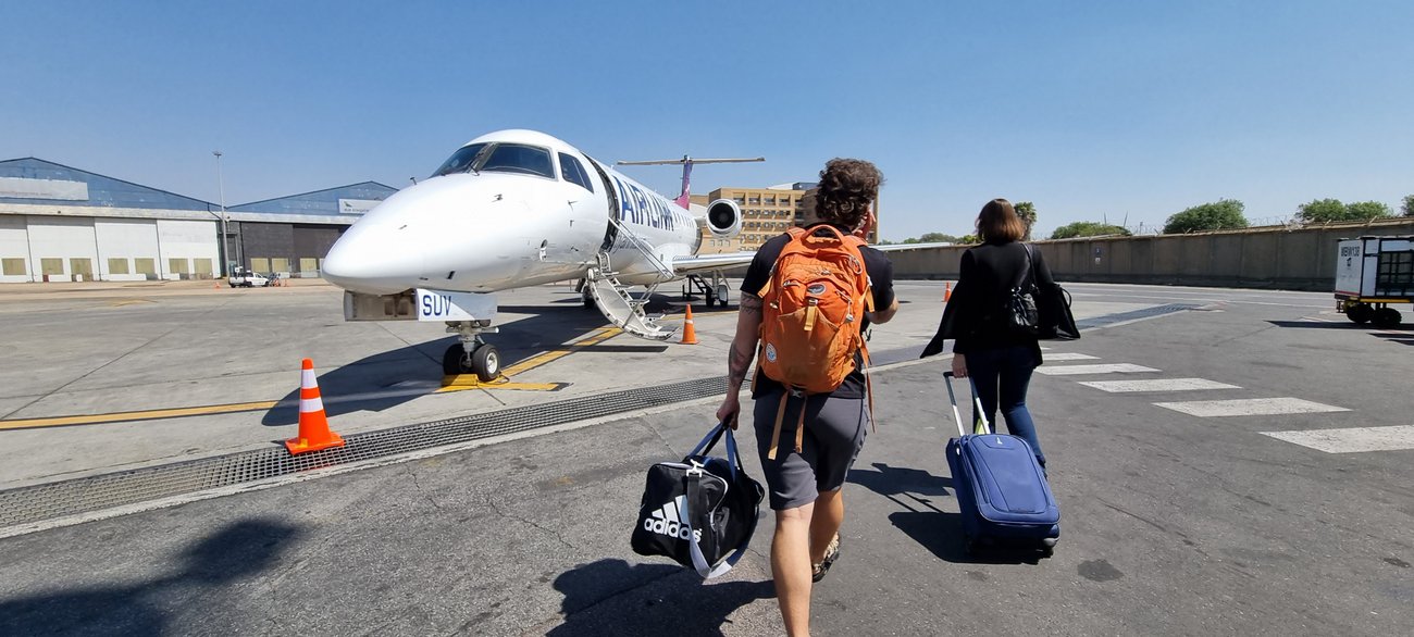 und Ankunft am Skukuza Airport