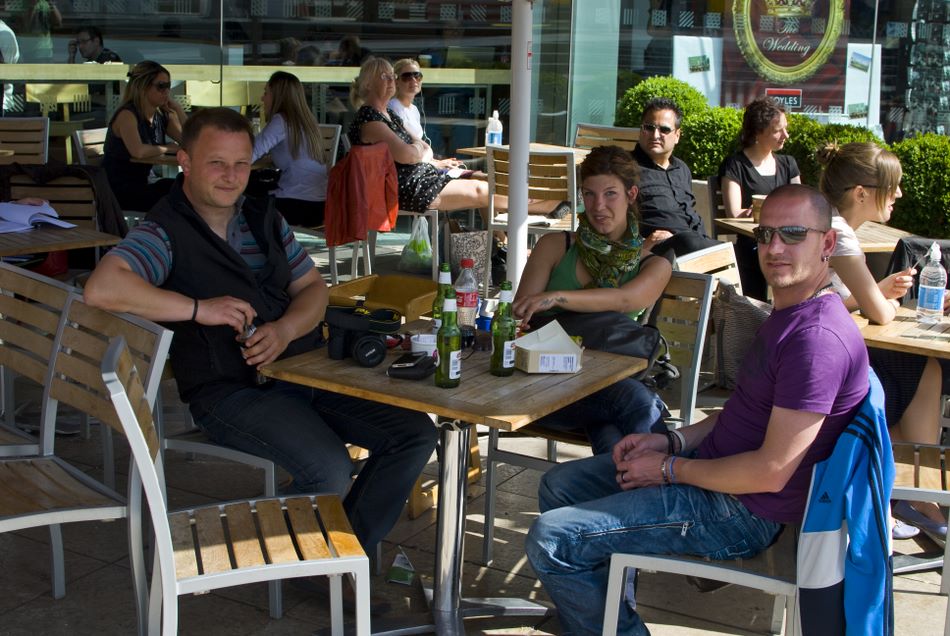 Wir sitzen gemütlich an der Themse bei ein zwei drei vier Bier und begnügen uns mit People watching... :)) da kommen so einige