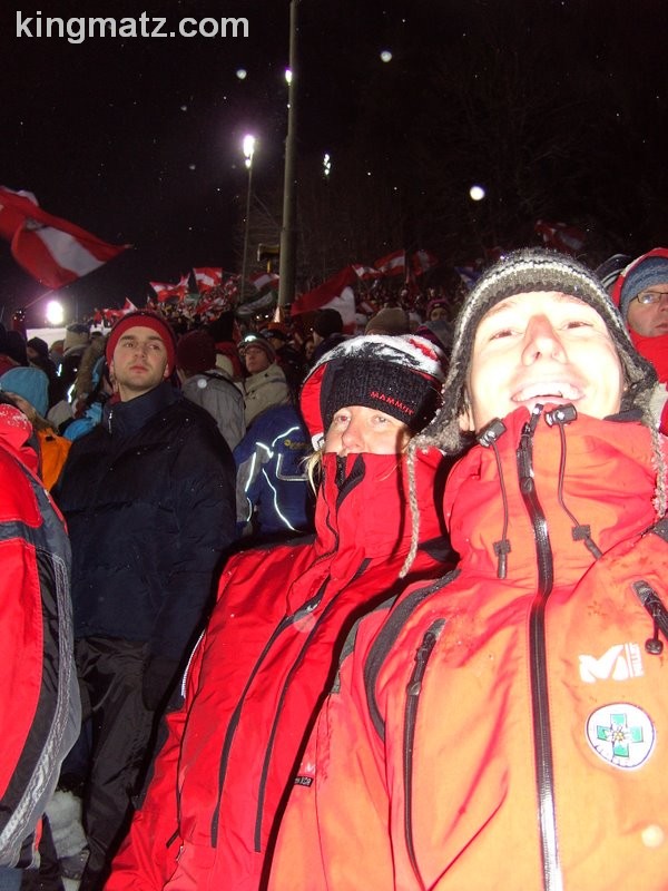 Hier stehen wir und jubeln dem Sieg von Mario Matt entgegen....