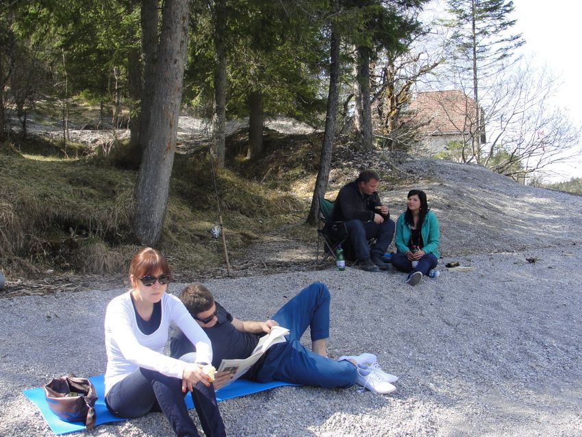 So um 06:00 gings wieder ab an den See und da sitzen wir nun
