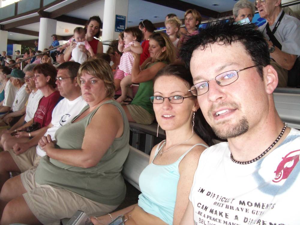 Ja hier sitzen wir auf der Tribüne bei der Delphin Show... Shows gibt es hier eine nach der anderen in allen