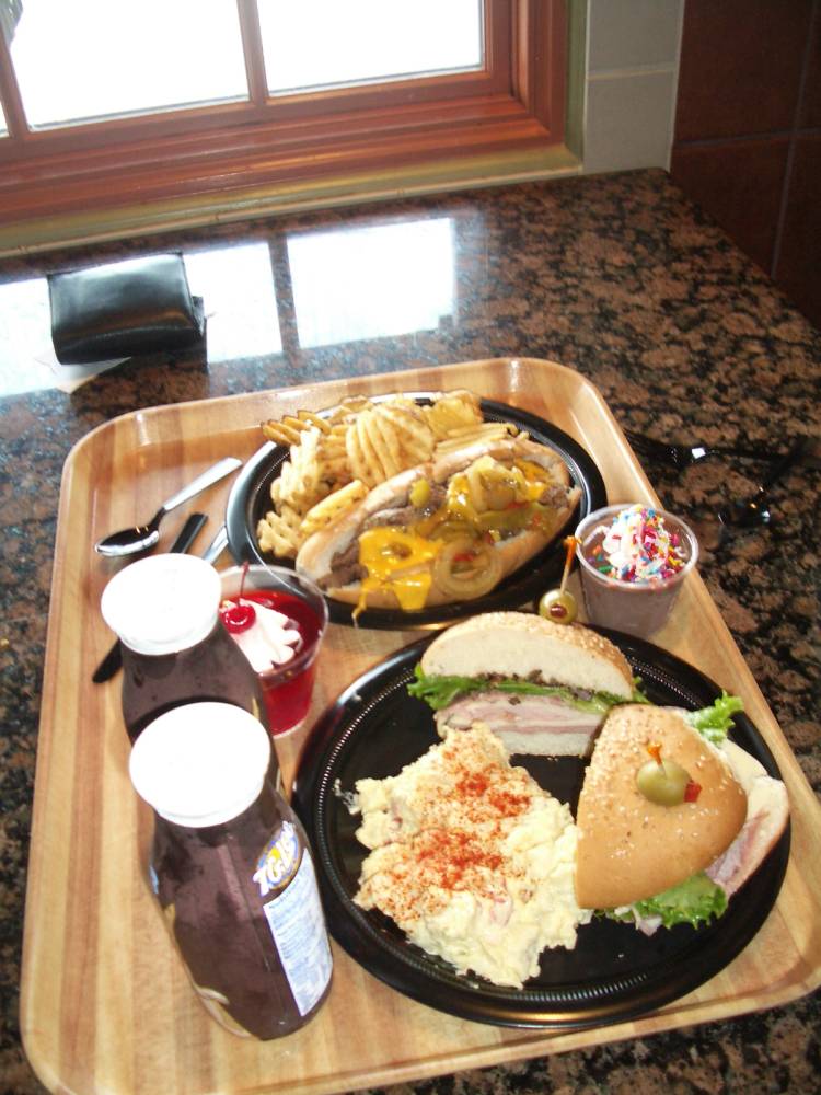 Romina ein Sandwitch und ich ein Steak Ding... Jedesmal soviel daß wir es