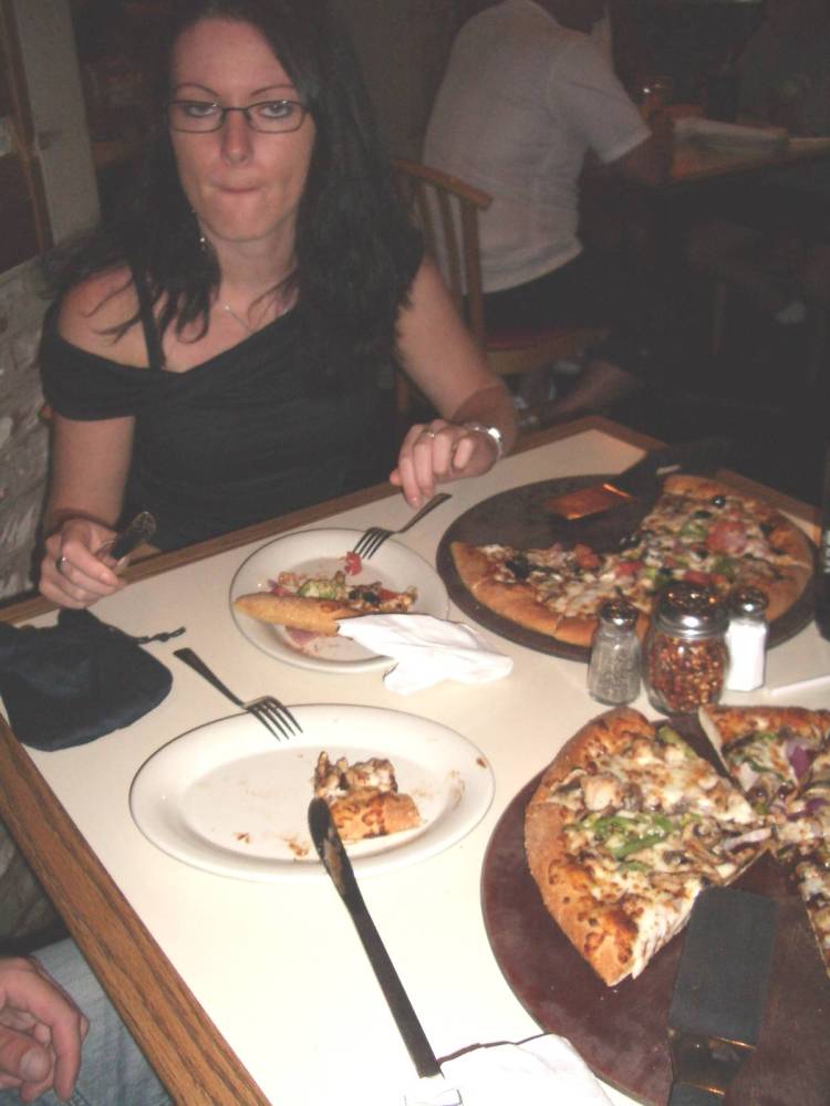 essen sollten und weggeschmissen haben wir den Rest der Pizza, nachdem sie zig male
