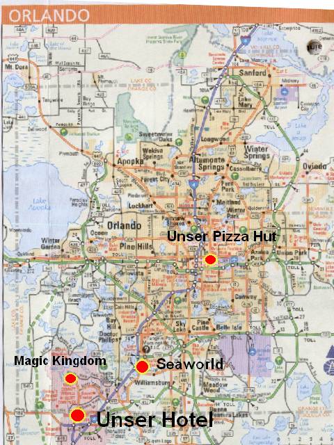 Diesesmal gings direkt in die Stadt und am International Drive haben einen Pizza Hut entdeckt...