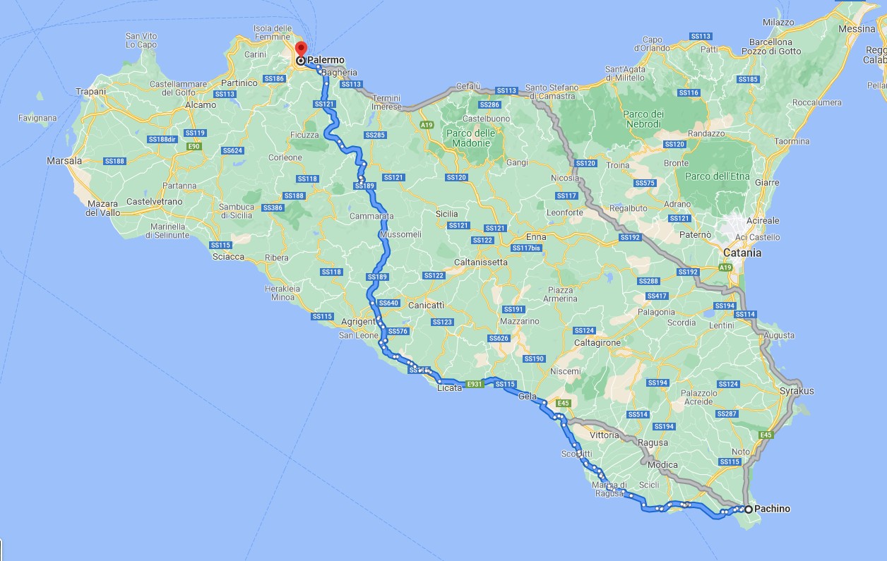 Etappe bzw. 2 Etappen ohne GPS Tracker zur Fähre nach Palermo