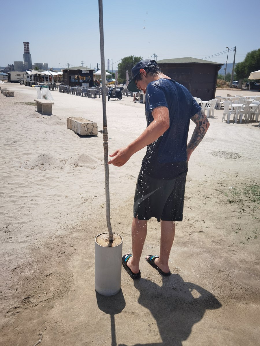 vor Abfahrt noch mal kühles Nass - einfach komplett unter kaltes Wasser