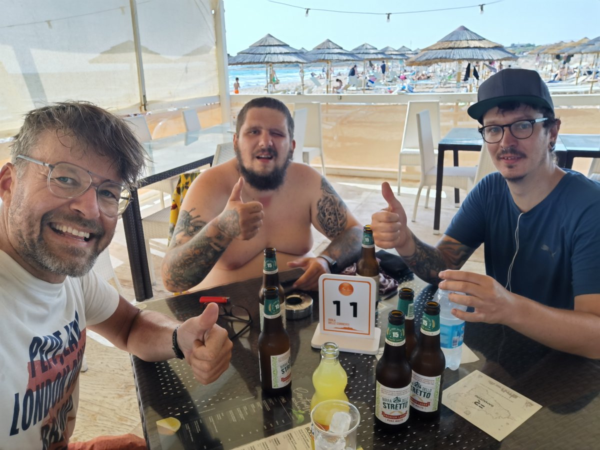 nach kurzer Abkühlung im Meer mal a Bierchen
