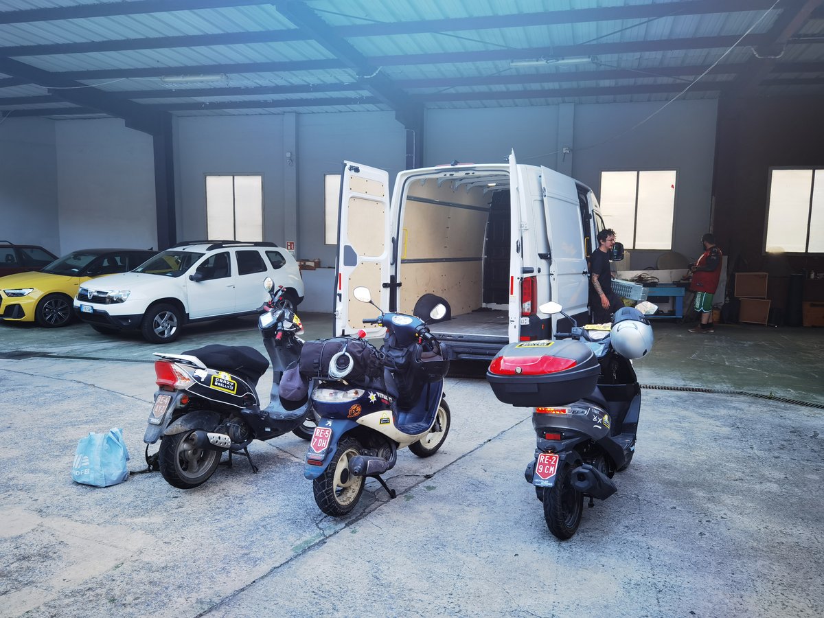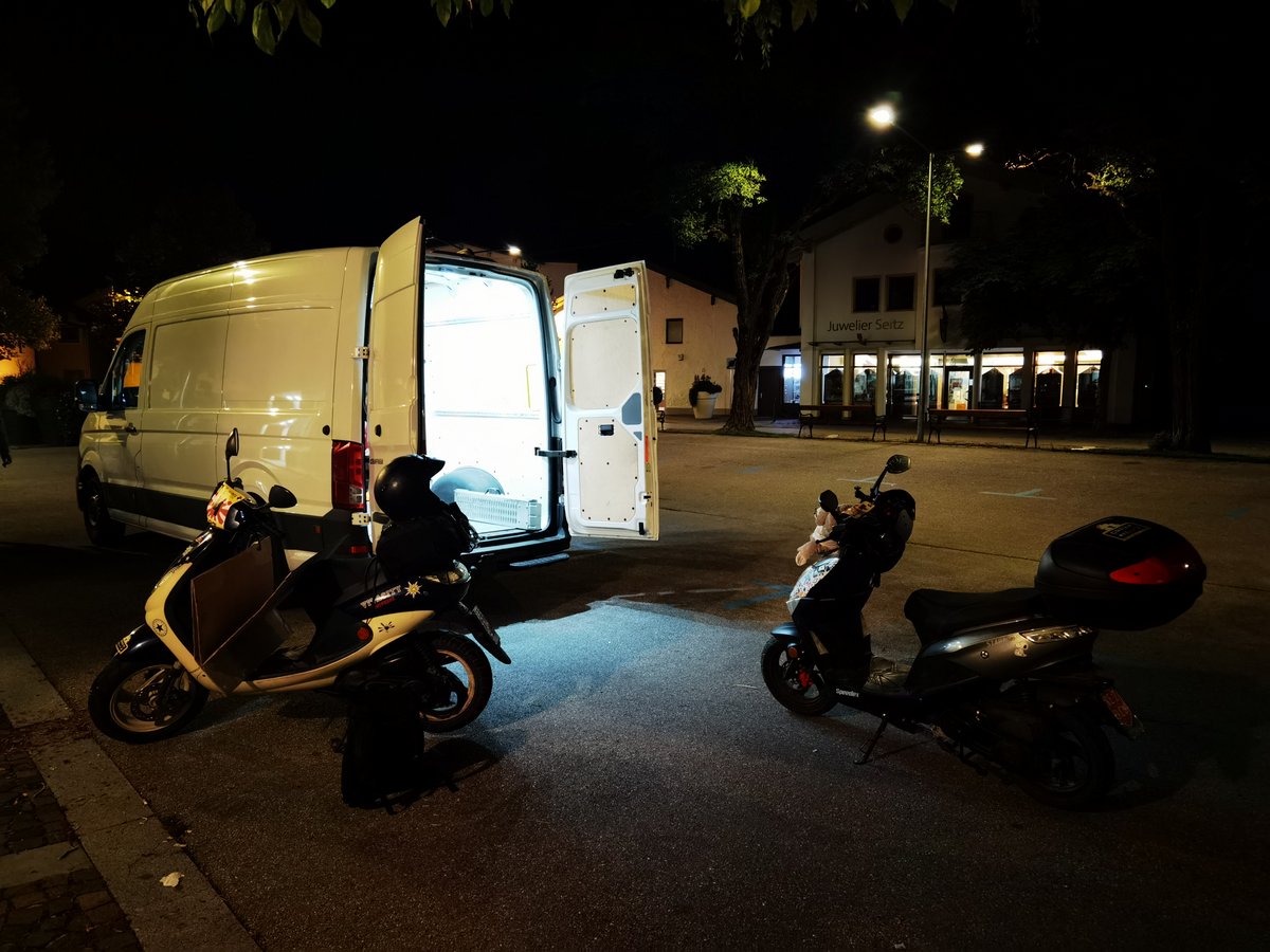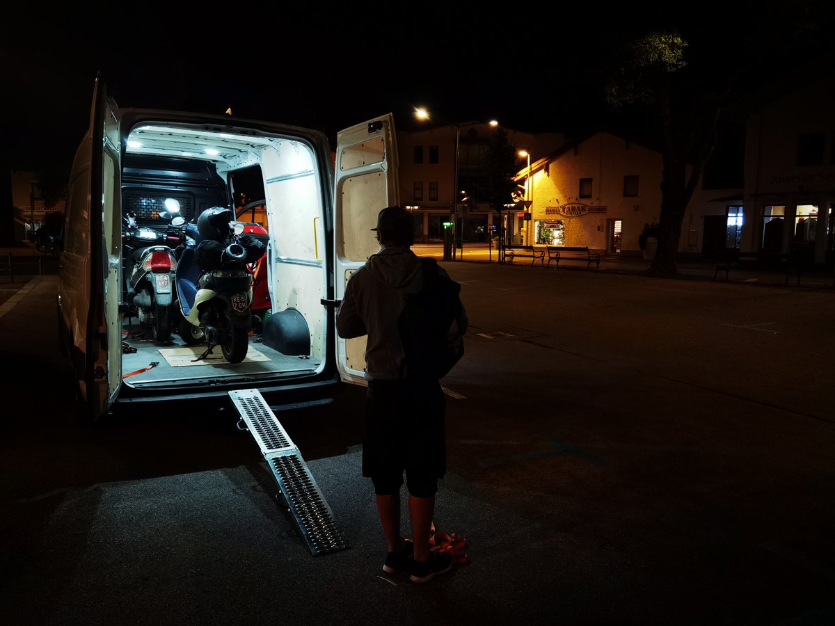ca. 04:00 in der Früh - Ankunft Reutte Isserplatz - Platti und ich laden unsere Roller ab