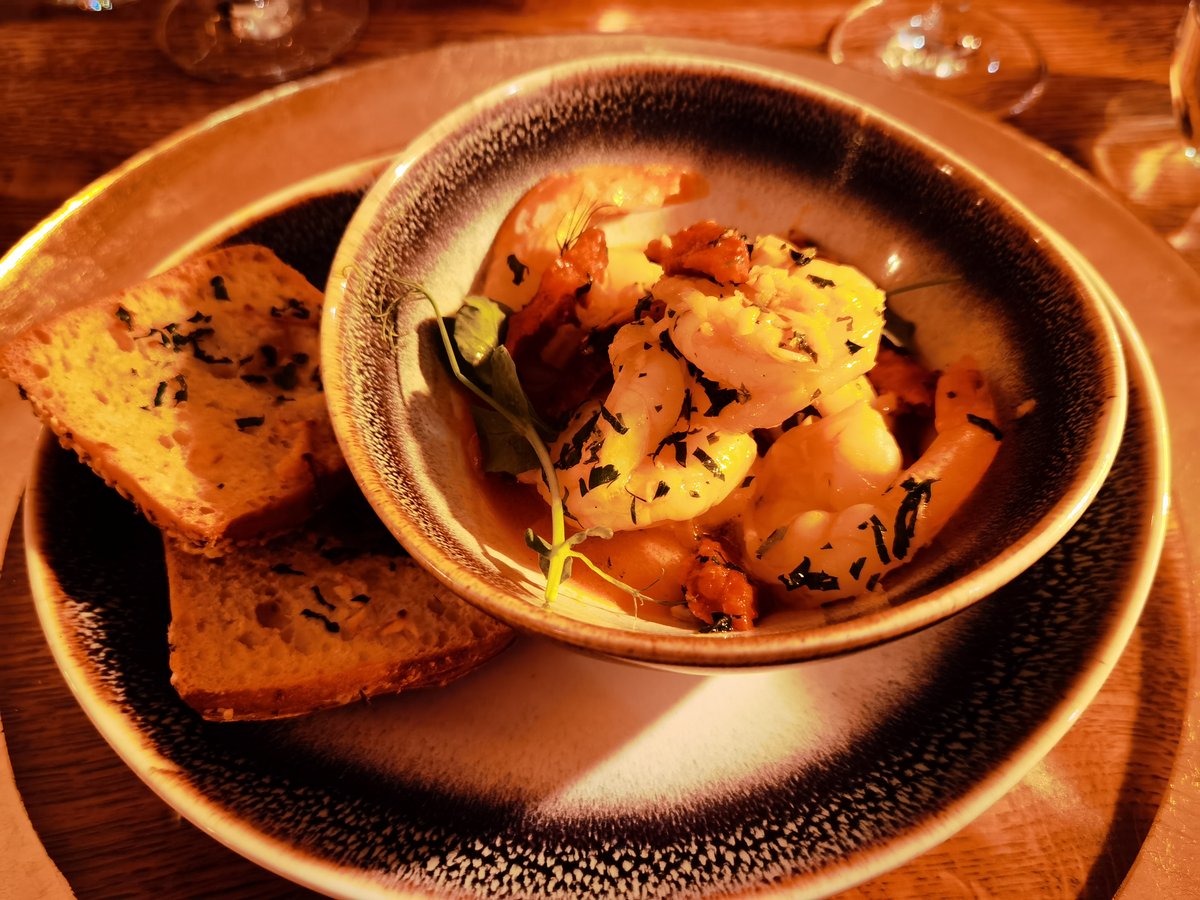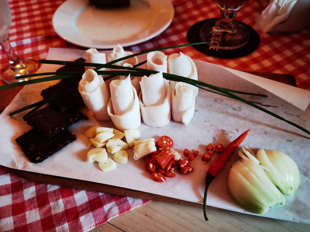 Vorspeise Mangalica Schweinespeck mit jeder Menge Knoblauch - oh Gott und ich hab danach ne Massage - na die wird die Luft anhalten müssen :D