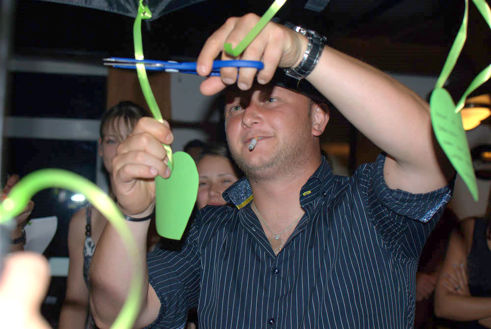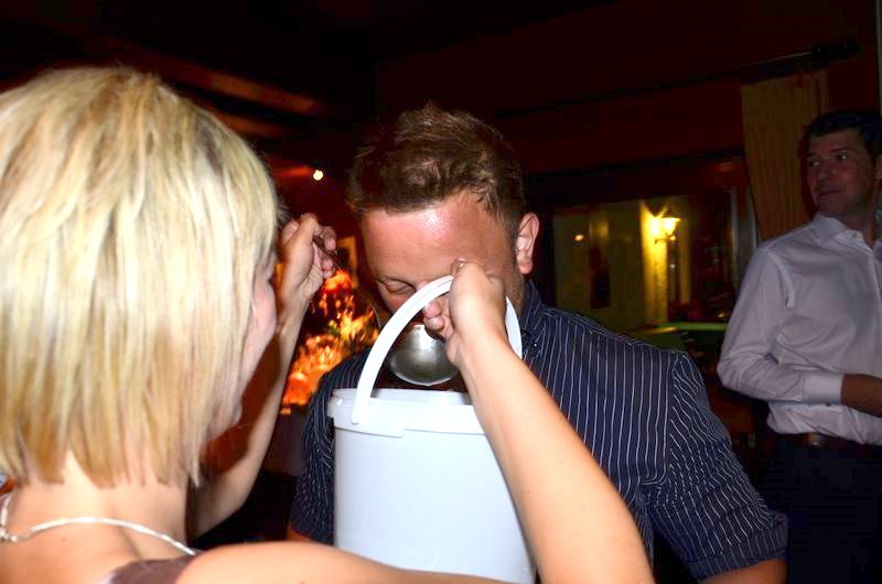 Und dann gibts ein Spielchen bei dem ein paar Gäste im nächsten Jahr für Bernd und Katrin was tun müssen