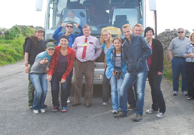 und ein Bild mit unserm Bus und natürlich unserm lustigen Reiseführer in der Mitte - Peter !!!! ein richtig alt eingefleischter Ire :-)