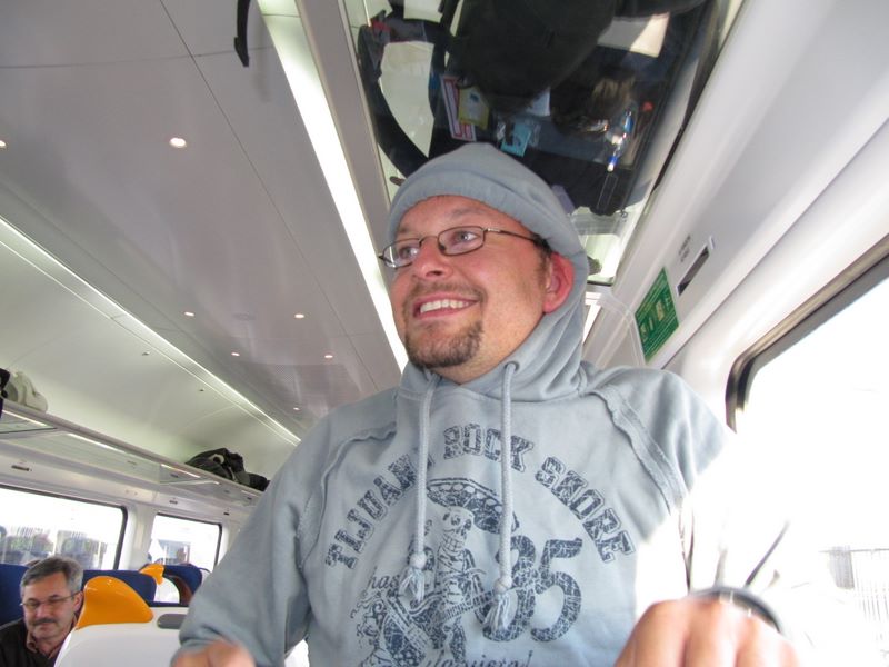 und da wartet der Bus - Peter vorn im Bus zu sehen ist schon wieder ungeduldig :-)